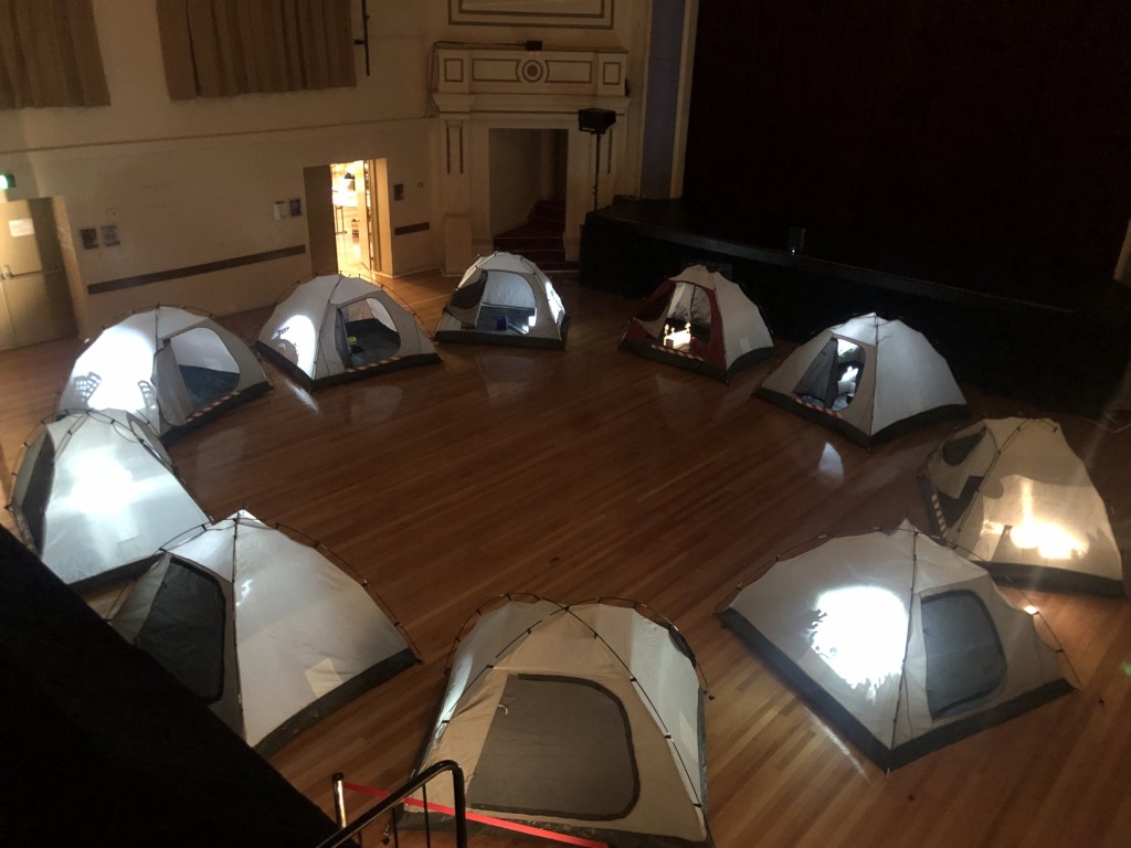 Each domed tent has a unique shadow set and torch waiting for a shadow creature to come and play.